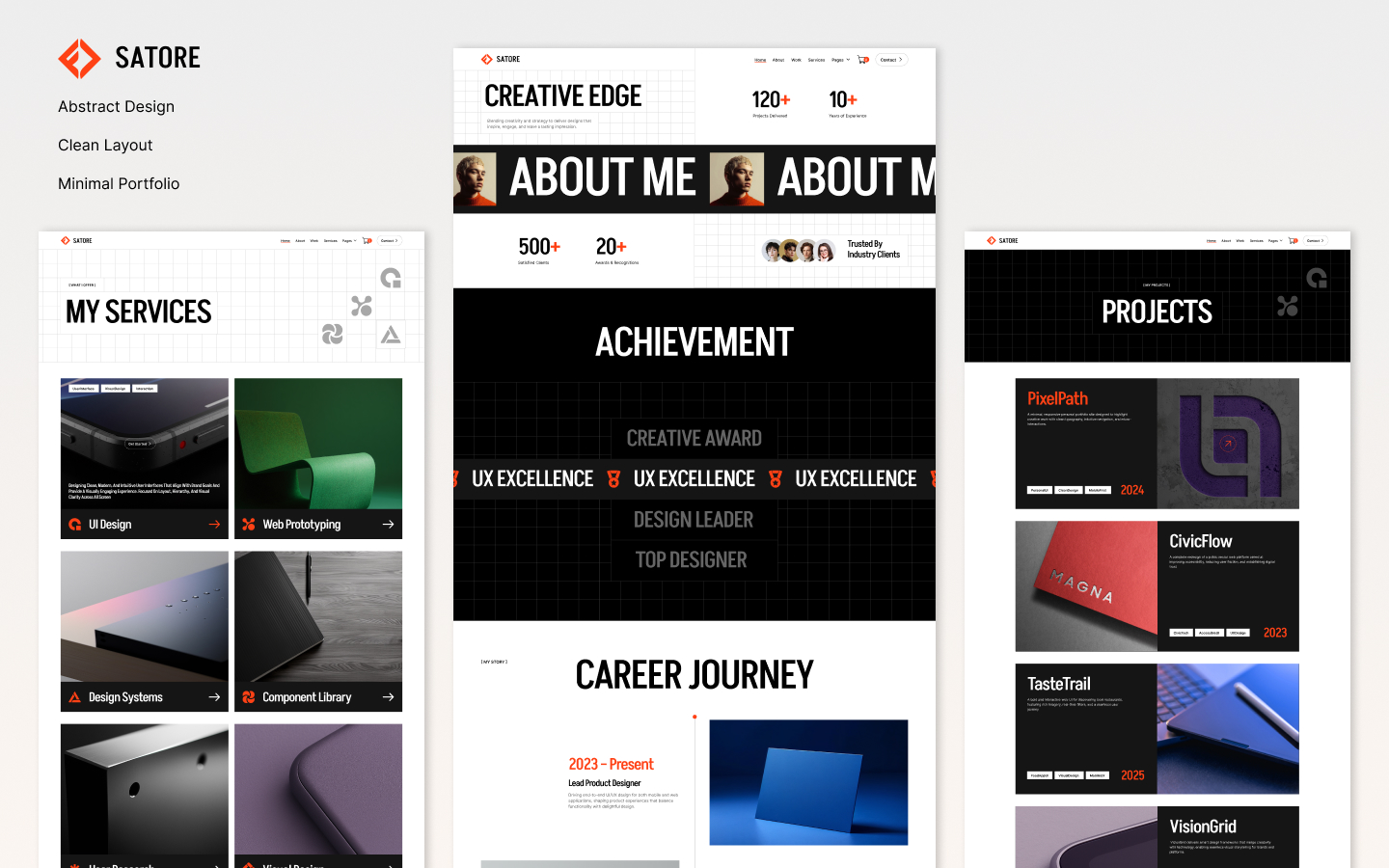 Satore is built for creatives who value simplicity, structure, and impact. Instead of overwhelming visitors with excessive animations or cluttered layouts, Satore focuses on clean design, strong typography, and balanced spacing. This allows your work, services, and story to stand out naturally.