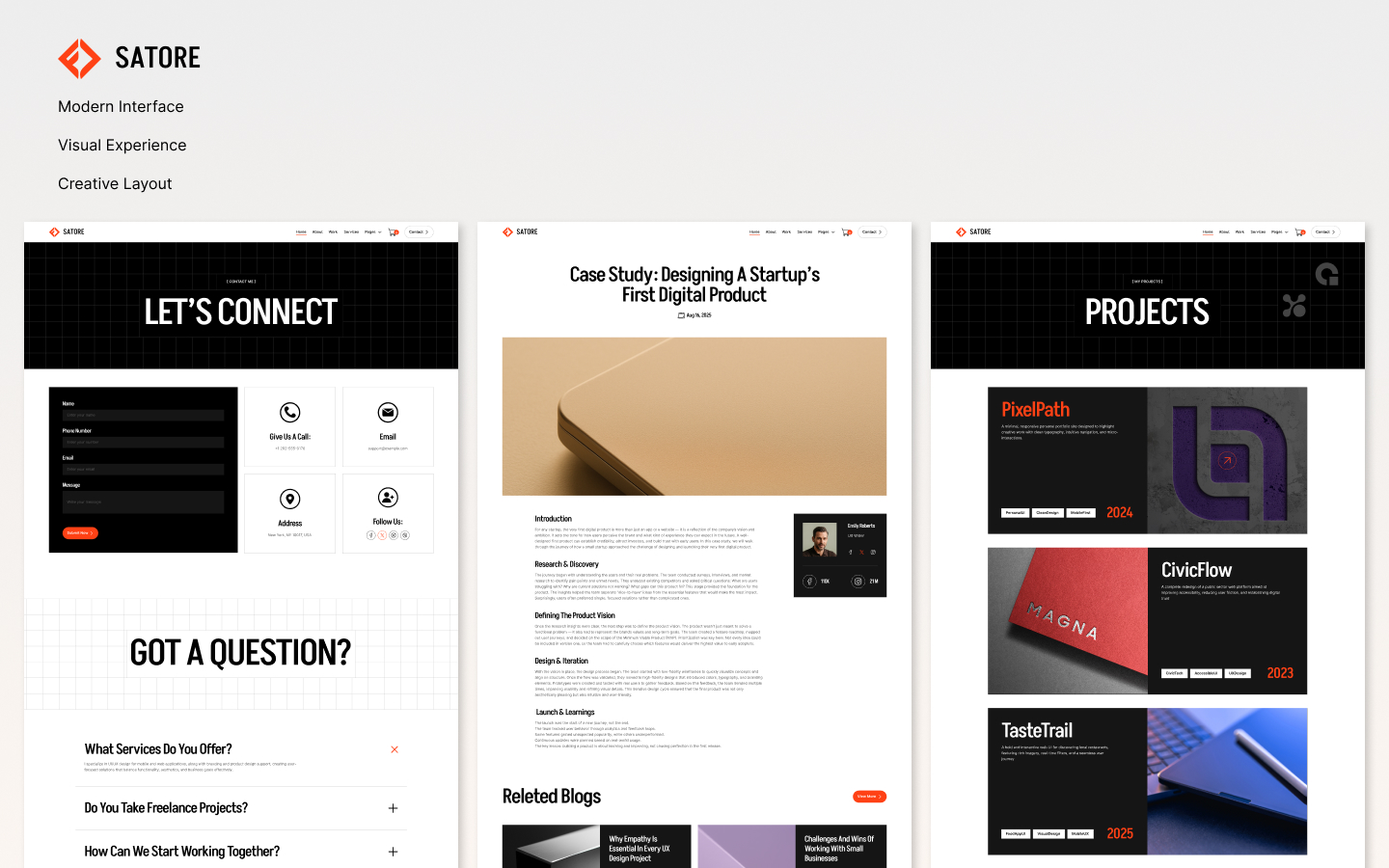 Whether you’re building a personal portfolio, a freelance website, or a creative agency platform, Satore gives you everything you need to present your services, showcase your projects, and grow your online presence with confidence.